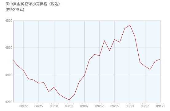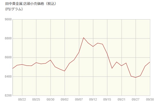 純金は一時8800を到達しましたが、そこから下げてはいますが