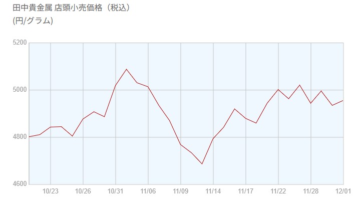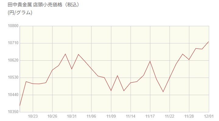 純金価格は好調を維持し、グラム1万円代を安定した値で進んでいます。