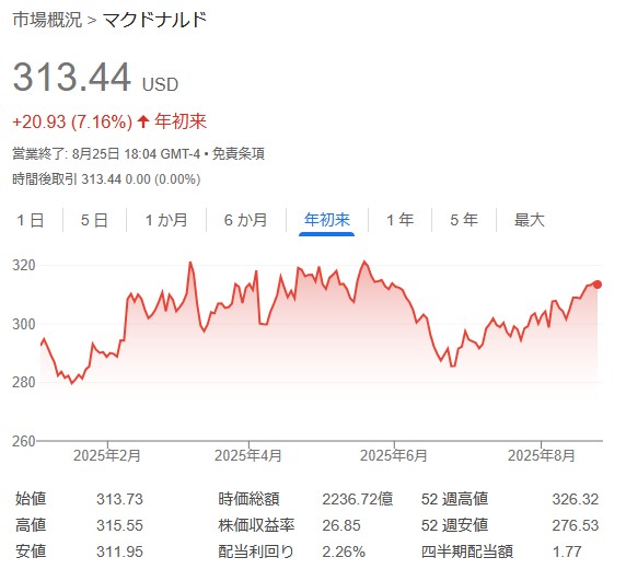 サテライト枠で、少しだけ持っている株の中にマクドナルド(MCD)があります
